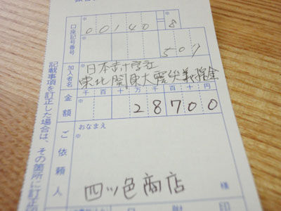 チャリティー作品の売上げ全額¥28,700、寄付致しました。