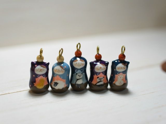 会津コシヒカリに手描きしたこぼしをスエードのリボンに貼って、こびんに入れて、ネックレスにしました◎