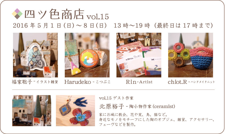 2016年5月1日~8日(※3日のみ、私はお休み頂きます!それ以外は在廊予定です)